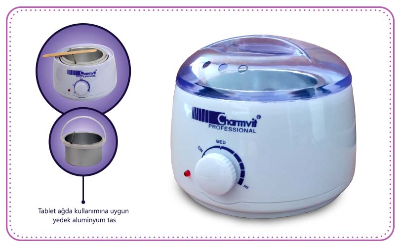 CM001 Canned Wax Warmer Thermostatized heater covering 360° inside the device Replacement aluminum bowl for tablet wax use Unbreakable durable plastic body Cover with air hole Suitable for home and salon use