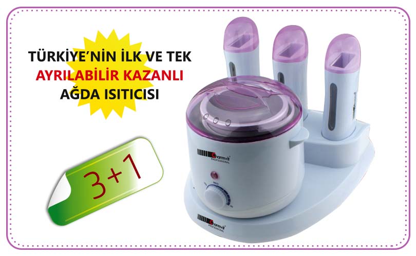 CM009 Wax Warmer 3+1 The first and only wax heater with detachable boiler 3 cartridge heaters that can be operated separately 1 can warmer with adjustable temperature Thermostatized heater covering 360° inside the device Replacement aluminum bowl for tablet wax use Shatter resistant bi-colour body Cover with air hole