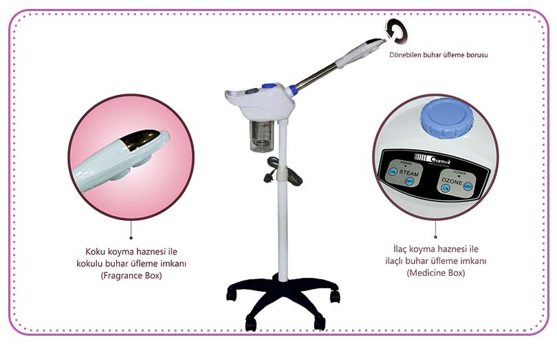 CM3368 Footed Facial Steamer Possibility of blowing medicated steam with medicine storage chamber Possibility of blowing fragrant steam with the odor storage chamber