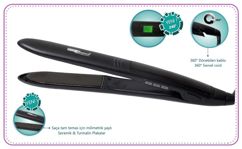 - Ceramic & Tourmaline coated surface